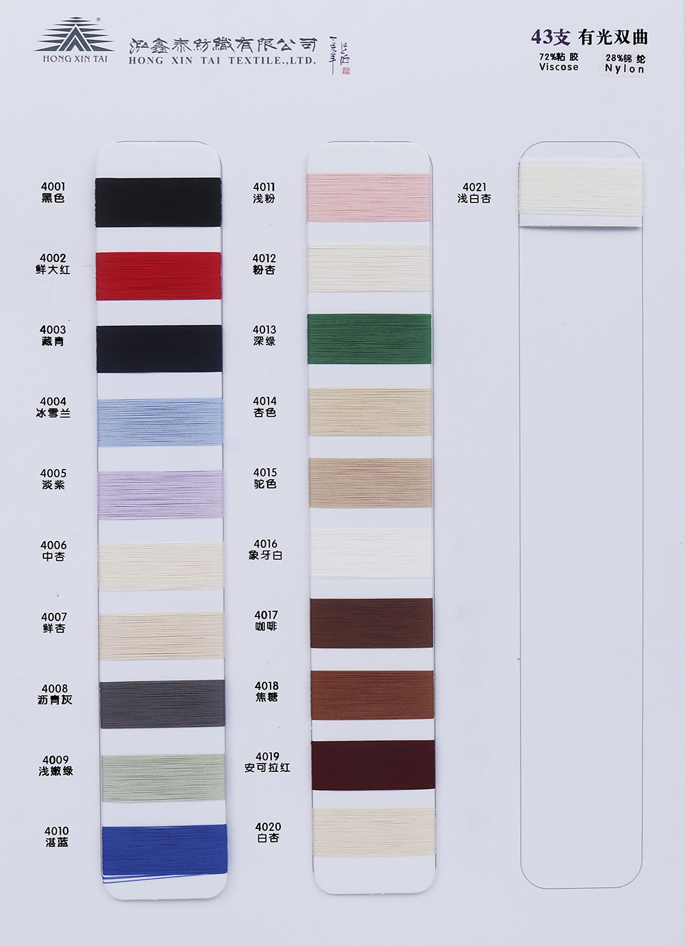 (24支/63%粘胶Viscose 37%尼龙Nylon)(30支/80%粘胶Viscose 20%尼龙Nylon)(43支/79%粘胶Viscose 21%锦纶Nylon )